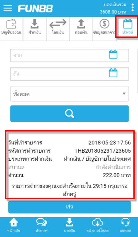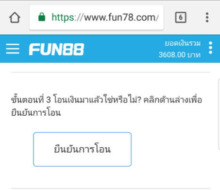 วิธีฝากเงินเข้าบัญชี FUN88 แบบบัญชีภายในประเทศ (มือถือ) - Fun88 Mobile - thaifun888.com