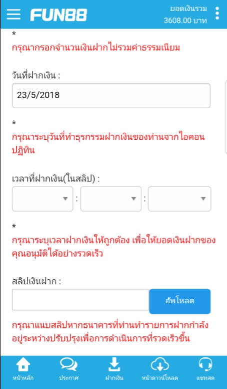 fun88 มือถือการฝากเงินข้อมูลทางการเงินเดิมพัน กับ Fun88